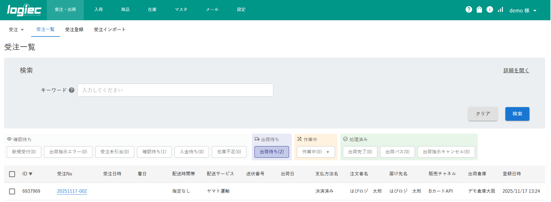 ※API連携後にlogiec側でエラーが発生した際は、logiec側でCSVデータを