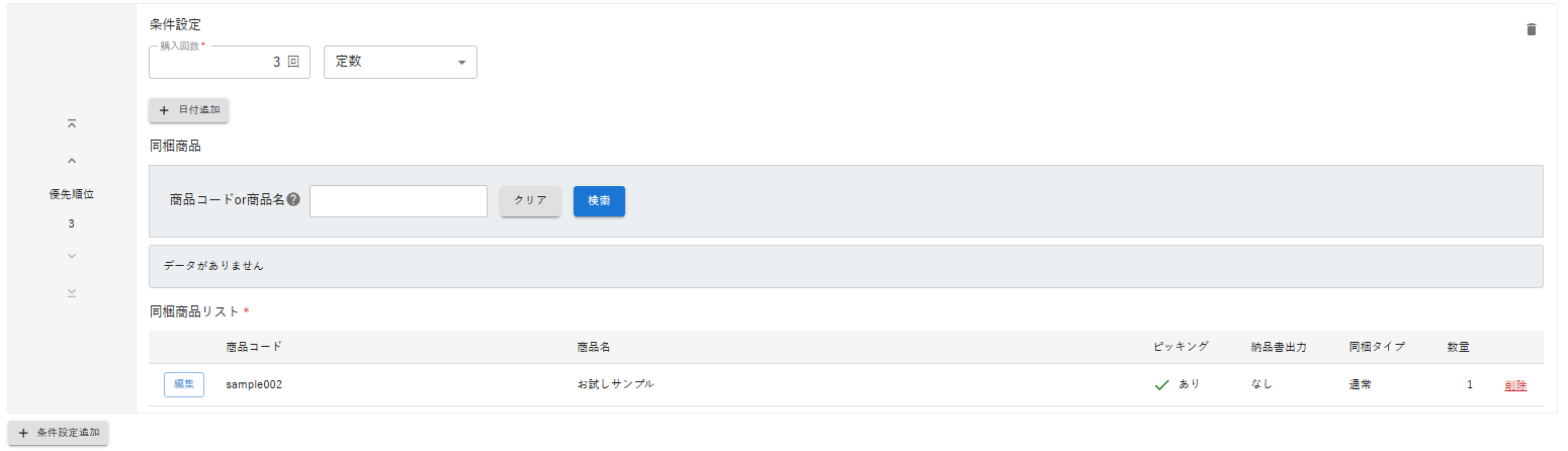 購入回数に応じて任意のチラシや商品を同梱物したい場合の設定方法です。