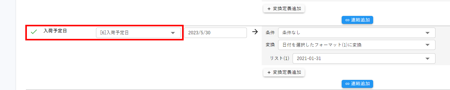 logiecのマッピングを確認し「入荷予定日」に紐づけられている項目を確認する。