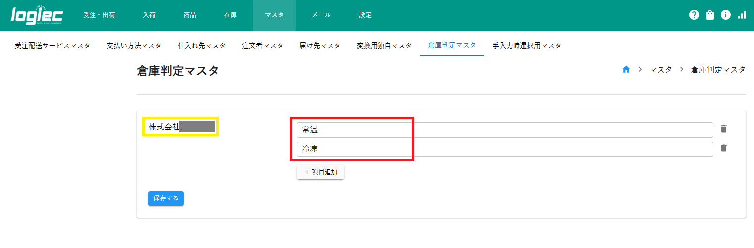 マスタ>倉庫判定マスタへ進みます。