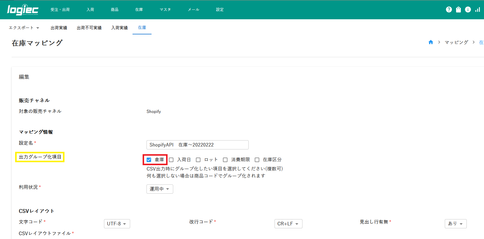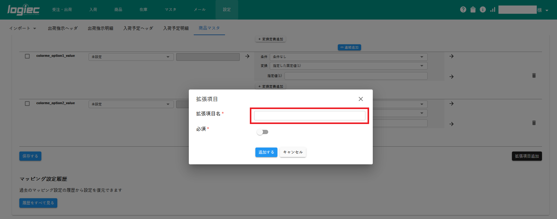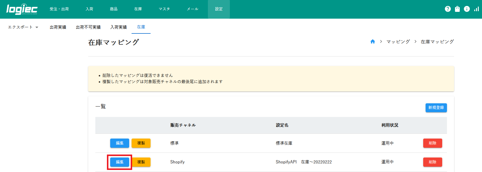 logiec-マッピング設定