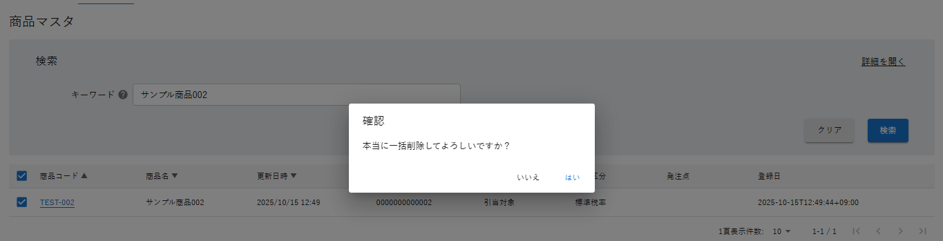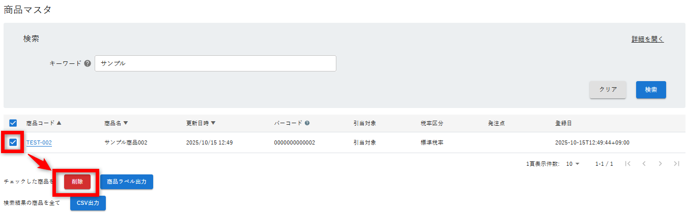 ※誤って削除した場合は、再度商品マスタのアップロードから取り込みをしてください。