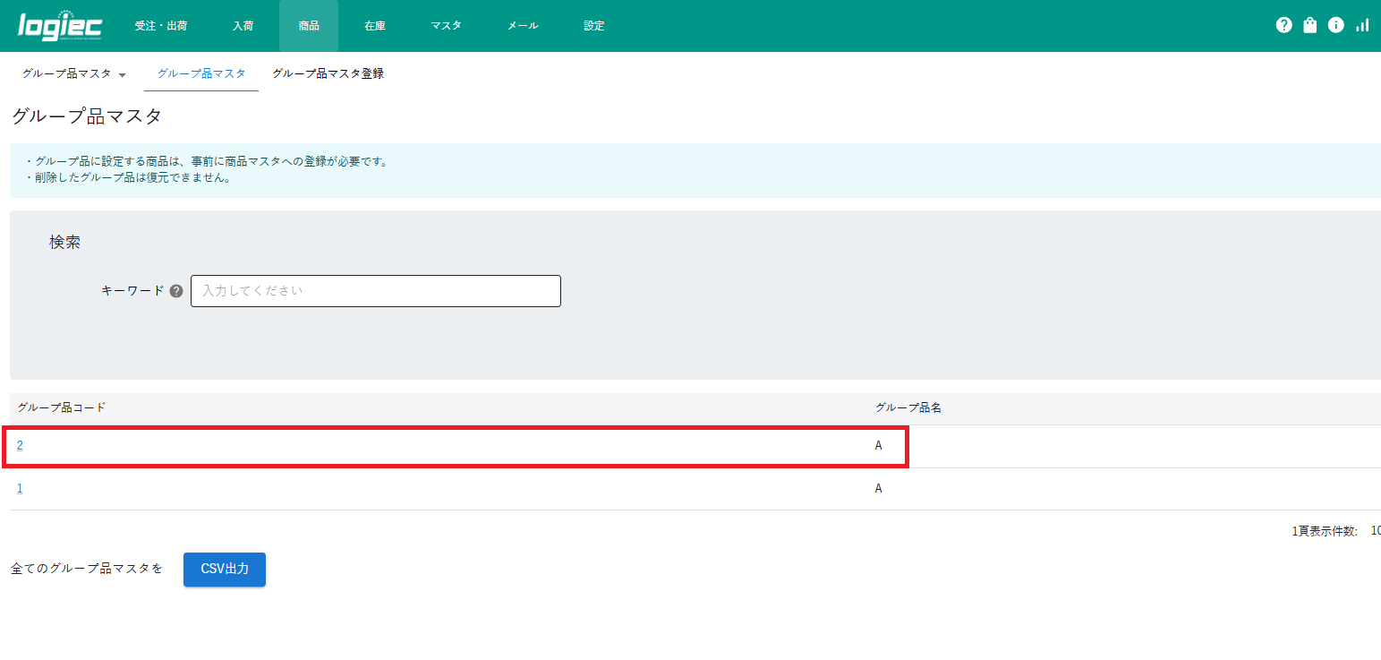 グループ品マスタの編集についてです。