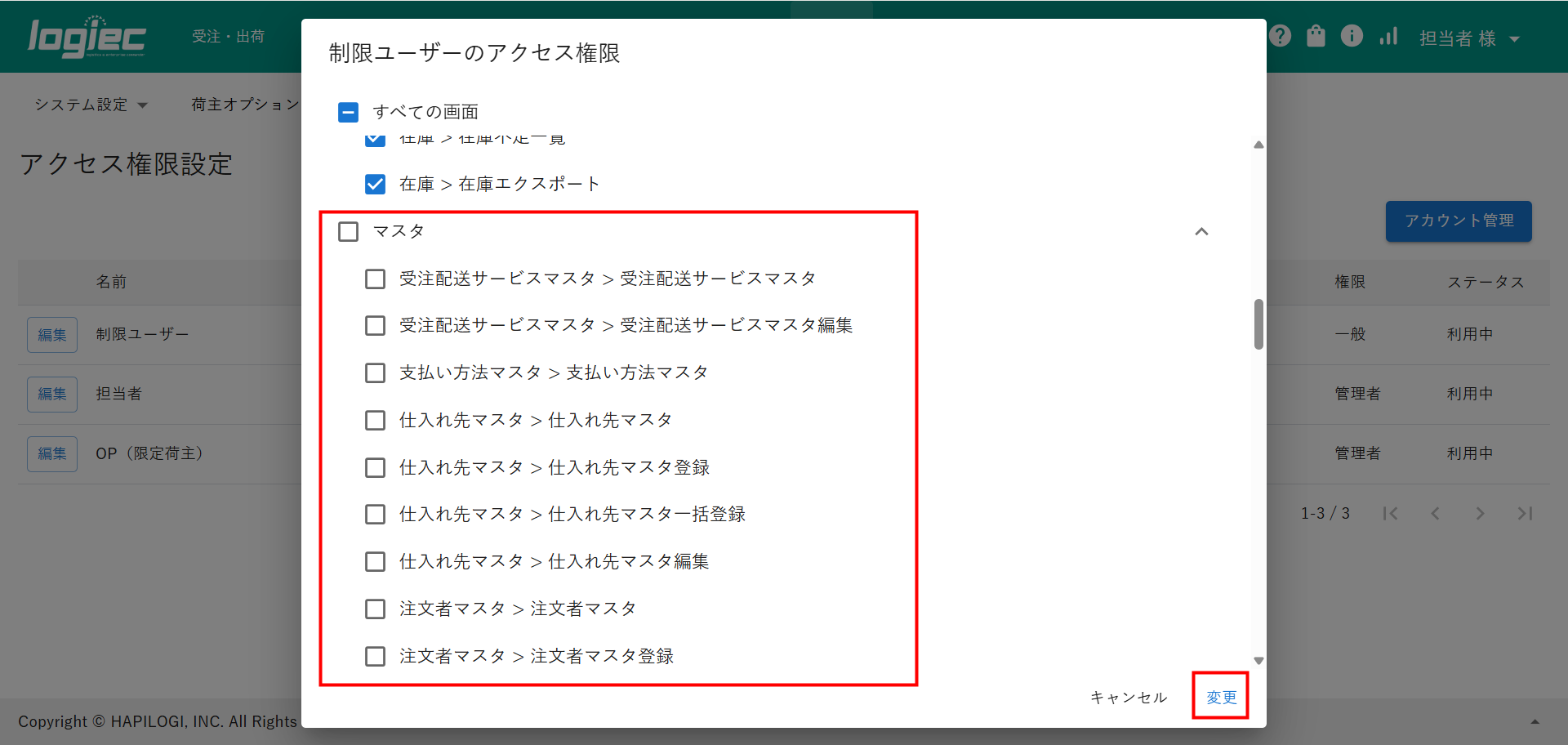 ユーザー単位でアクセスできる画面を制御する機能です。