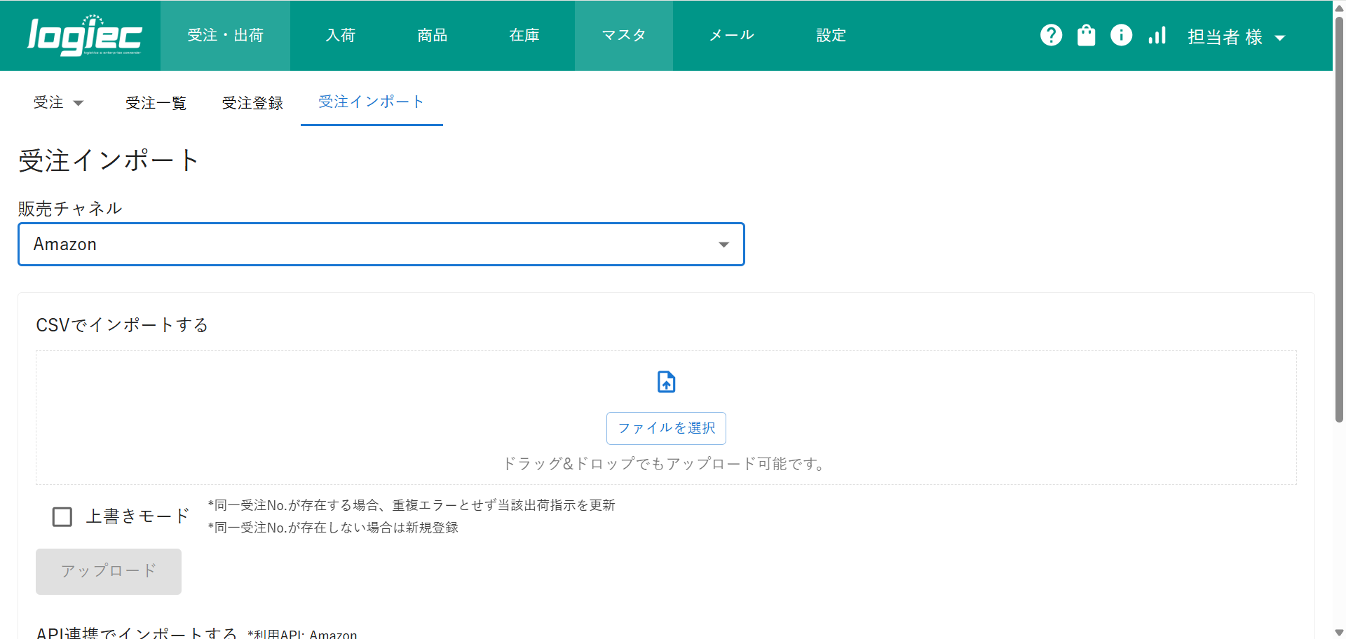 ③CSVでインポートするもしくはAPI連携する場合にそれぞれ以下手順に沿って受注データをインポート(アップロード)します。