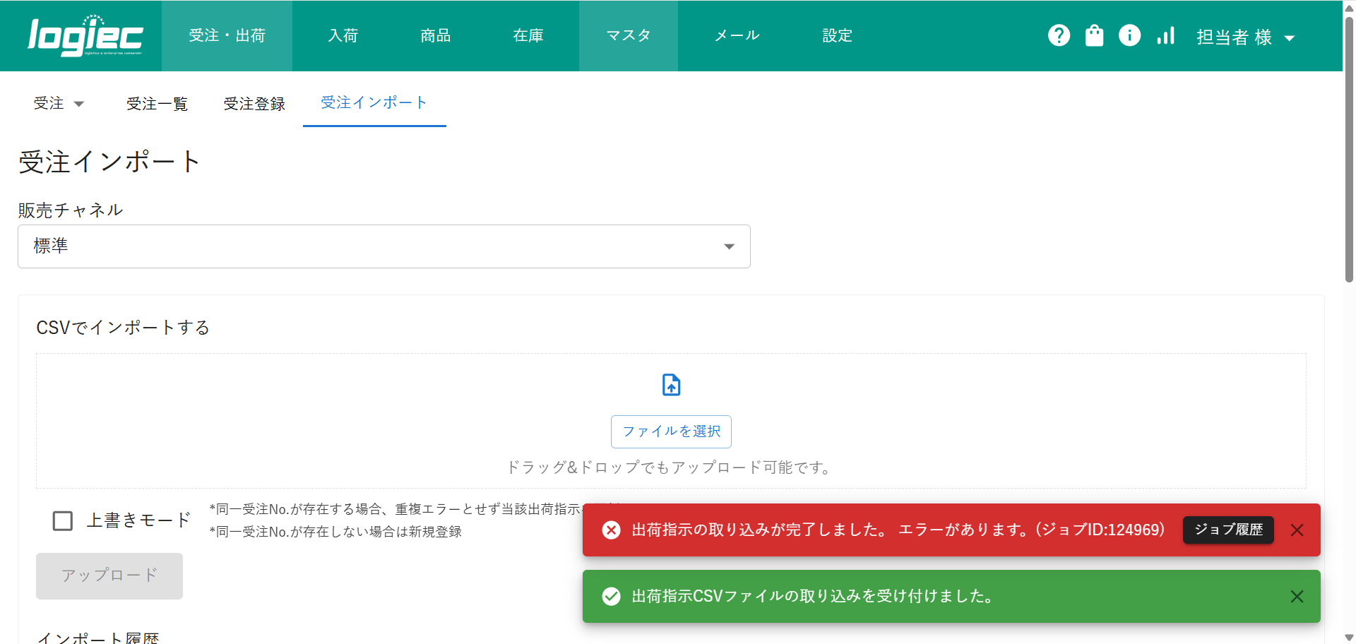 ※すでに取込済みのデータを上書き登録したい場合は「上書きモード」に✅をし【アップロード】することで上書き登録が可能です。 -