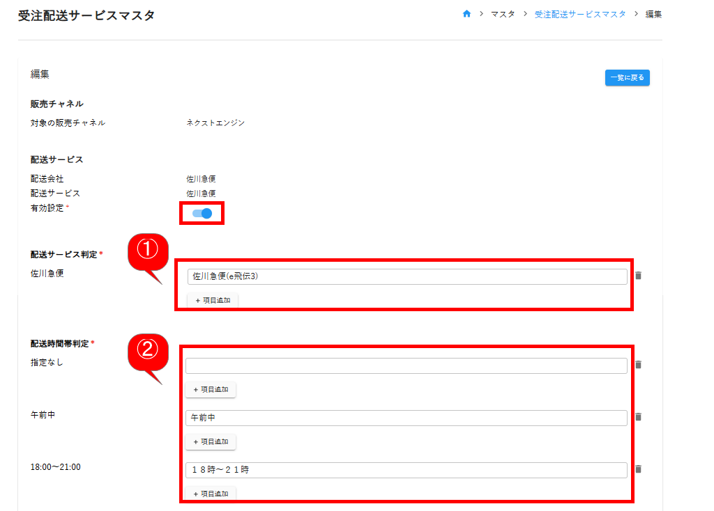 登録した店舗を選択し、変換後の[ ]で括られた時間帯を「配送サービスマスタ」に登録します。